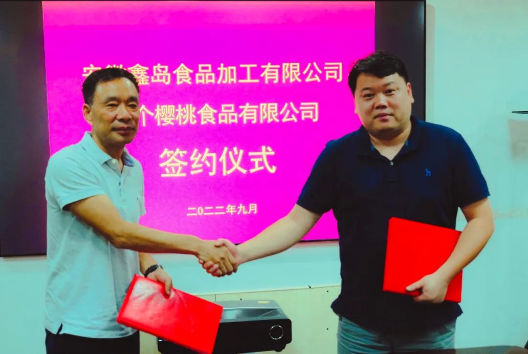 2022年09月16日下午,在匯鑫集團(tuán)一號會議室舉行了鑫島食品加工有限公司與江蘇三個櫻桃食品有限公司戰(zhàn)略合作協(xié)議的簽約儀式。鑫島總經(jīng)理張青、三個櫻桃總經(jīng)理張現(xiàn)東出席簽約儀式并在協(xié)議文本上簽字。